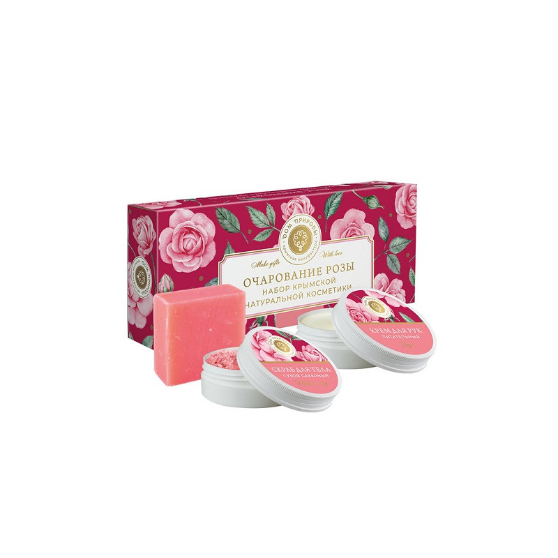 Тонкий, изысканный и неповторимый. Так можно описать аромат королевы цветов. Вы ощутите его, когда будете пользоваться косметическими средствами из этого набора. Мыло и скраб позаботятся об эффективном и в то же время бережном очищении кожи. Крем для рук сделает кожу нежной и мягкой. "Очарование розы" – подарок для тех, кто дорог сердцу.