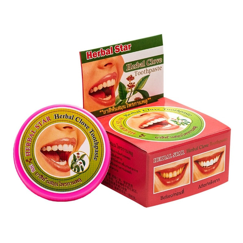Зубная паста Herbal Star Herbal Clove Toothpaste содержит концентрированный экстракт гвоздики и ряд других природных компонентов, положительно влияющих на текстуру и оттенок зубов.