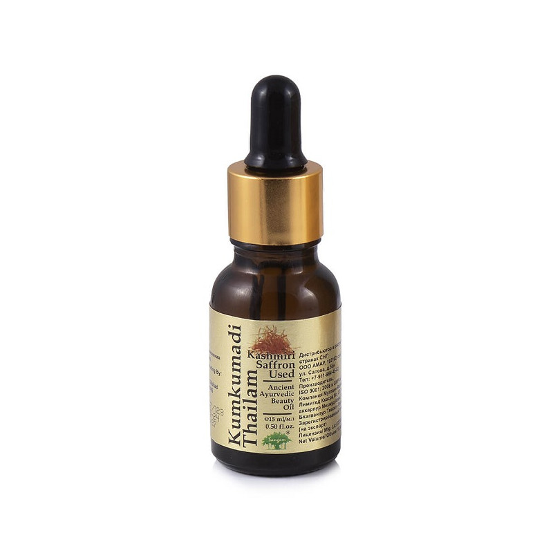 Масло для лица Кумкумади от Sangam Herbals — это комплекс масел на основе масла драгоценного кашмирского шафрана, которые подобраны таким образом чтобы в первую очередь защитить кожу от фотостарения и пигментации. Оно выравнивает цвет кожи даже если проблема пигментации уже есть. В богатом составе присутствуют масла белого и красного сандала, куркумы, агарового дерева, солодки, гималайской вишни, лотоса, молока и др, что делает этот продукт очень эффективным.
