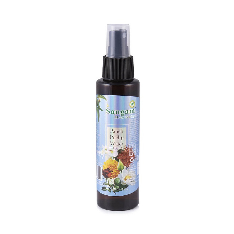 Гидролат ПанчПуш Sangam Herbals — это сила пяти цветов в одном средстве. Смесь целебных свойств розы, жасмина, шафрана, лотоса и календулы, объединенные в одной цветочной воде.