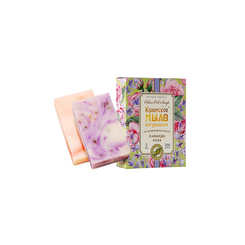 Два кусочка натурального крымского мыла на оливковом масле ручной работы — «Лаванда и Роза». Сварено с любовью и заботой.