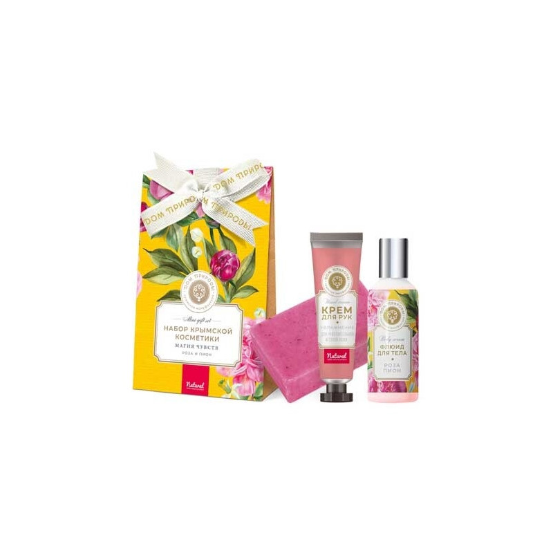 Этот набор скрывает в себе магию цветочных ароматов: пленительная роза и благоухающий пион... Для очищения кожи и придания ей бархатистости подойдет натуральное мыло. О красоте и защите кожи рук позаботится крем с ценными маслами. Атмосферу праздника поможет создать флюид - отлично увлажняет кожу и придает ей сияние.