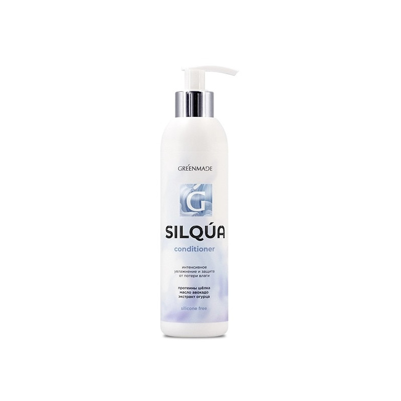 Способ применения: Нанесите кондиционер на чистые влажные волосы, равномерно распределите по длине, избегая корней. Оставьте на 2-3 минуты, затем тщательно смойте тёплой водой. Рекомендуется использовать совместно с шампунем GREENMADE SILQUA.