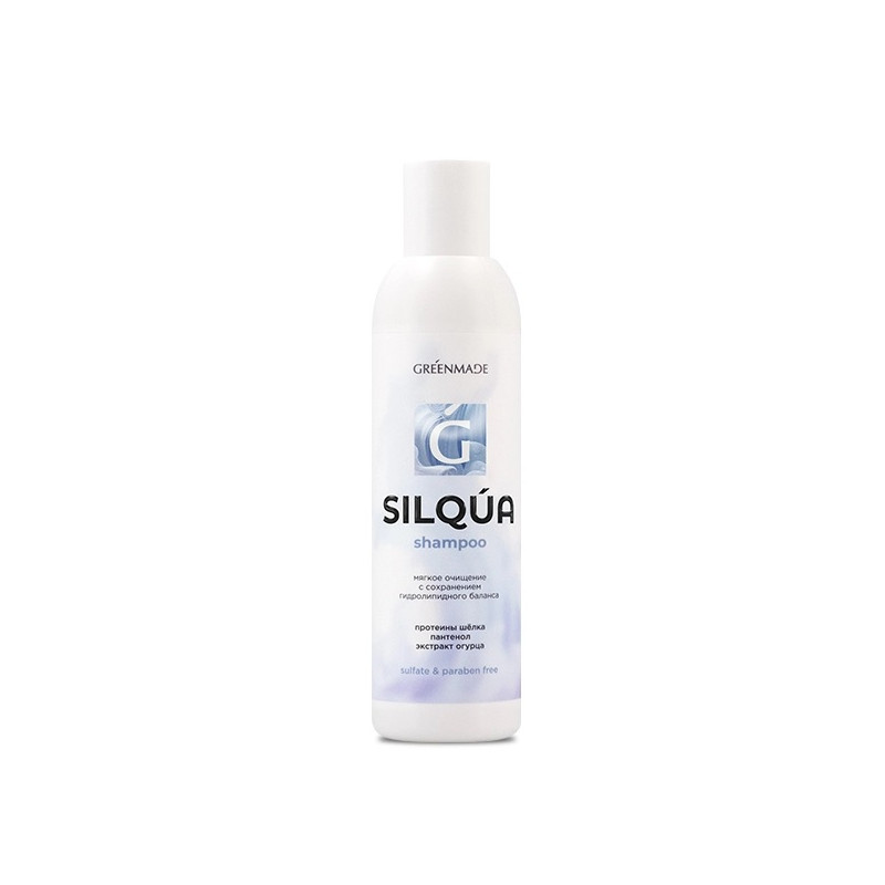 Способ применения: Нанесите шампунь на влажные волосы и кожу головы, мягко вспеньте массажными движениями, затем тщательно смойте тёплой водой. При необходимости повторите процедуру. Для достижения максимального результата используйте совместно с кондиционером GREENMADE SILQUA.