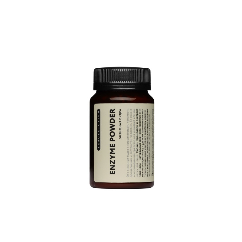 Энзимная пудра с ниацинамидом, папаином, бромелайном и экстрактом черимойи. Ее можно использовать как средство для умывания или как маску для лица. Папаин, бромелайн и экстракт черимойи - натуральные ферменты (энзимы), они нежно очищают кожу и удаляют ороговевшие частички, ниацинамид усиливает выработку церамидов и уменьшает пигментацию, а экстракт алоэ вера успокаивает кожу, снимает отеки и увлажняет.